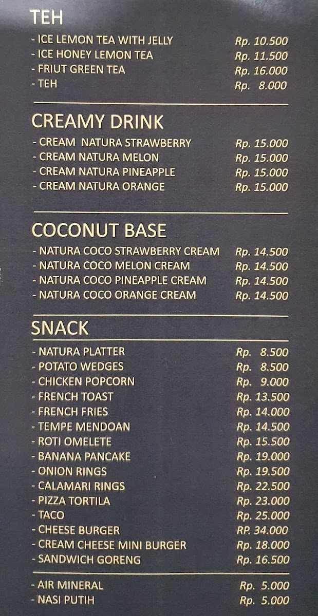 Natura Cafe & Resto is a must-visit spot for anyone seeking delicious food and a peaceful dining environment. You won't be disappointed!